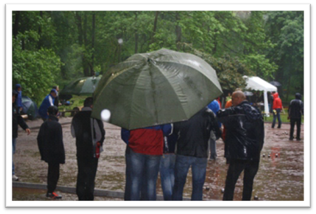 Wetterkapriolen beim 1. Mai TurnierWenn der Boulesport dem Himmel trotztDa Boule als klassische Freiluftsportart gespielt wird, entscheidet das Wetter oft darüber, ob ein Turnier reibungslos verläuft oder zur echten Herausforderung wird. Das gilt natürlich ganz besonders für das traditionsreiche 1. Mai Turnier in Saarlouis.Trotz aller Widrigkeiten wurde der Spielbetrieb fast immer aufrechterhalten – ein Beleg für die Leidenschaft der Teilnehmenden und die hervorragende Organisation. Hier eine kleine Auswahl markanter Wetterereignisse, die das 1. Mai Turnier im Laufe der Jahre besonders geprägt haben:Jahre mit starken Regengüssen, in denen der Platz kurzzeitig unter Wasser stand und einzelne Vorrundenspiele verschoben werden mussten.Turniere mit schweren Gewittern, die unerwartet über dem Saarland aufzogen und für Spielunterbrechungen sorgten.Stürmische Bedingungen, die den Spielern höchste Konzentration abverlangten und Kugeln teilweise vom Kurs abdriften ließen.Ungewöhnlich kalte Maitage, an denen Winterjacken statt T Shirts zum Standard wurden.Sonnige Rekordjahre, die trotz Hitze für perfekte Boule Atmosphäre sorgten.Im Laufe seiner langen Geschichte war das Turnier immer wieder von teils überraschenden, teils angekündigten Wetterumschwüngen betroffen. Mal stellte ein vorhergesagter Dauerregen die Organisatoren auf die Probe, mal traf ein plötzliches Sommergewitter die Spieler völlig unvorbereitet. Hier drei Beispiele:1996 verlief das Turnier bis zum frühen Nachmittag bei bestem Boulewetter. Doch dann setzte ohne große Vorwarnung gegen 16 Uhr ein Gewitter mit sintflutartigen Regenfällen ein. Die Saarbrücker Zeitung berichtete im Anschluss von Sturzbächen und Überflutungen auf dem Saarlouiser Bouleplatz. Das Turnier wurde zum ersten Mal in seiner langjährigen Geschichte abgebrochen.2014 versprachen die Wetterprognosen ideales Boulewetter: „In Saarlouis bleibt der Himmel am Morgen grau und die Temperaturen liegen zwischen 11 und 12°C. Mittags wechseln sich Bewölkung und Sonne ab bei Höchstwerten von 14°C.“ Allerdings irrten sich die Wetterfrösche und ab 13:00 Uhr wechselten sich nicht Bewölkung und Sonne ab, sondern Platzregen und starke Schauer. Mehrfach musste das Turnier wegen starkem Regen unterbrochen werden und schließlich konnten die Finalspiele ab Halbfinale nicht mehr durchgeführt werden, da alle Boulespieler völlig durchnässt waren.2015 verhießen die Wetterprognosen im Vorfeld schon nichts Gutes und so begannen die Vorbereitungen zum Turnier bereits bei strömenden Regen. Aber es zeigte sich, dass die saarländischen Boulespieler sich von Regen und von Temperaturen um die 10 Grad nicht abschrecken lassen und so meldeten sich immer noch 36 Teams für das Hauptturnier an.Diese Wetterkapitel gehören zur Geschichte des Turniers ebenso dazu wie sportliche Höhepunkte, große Sieger und Rekordbeteiligungen. Sie zeigen:Der Boulesport lebt draußen – und das 1. Mai Turnier schreibt seine Geschichten oft direkt unter freiem Himmel. Beitragsnavigation Saar-Lor-Lux Damenturnier Bildergallerie 1. Mai 2025