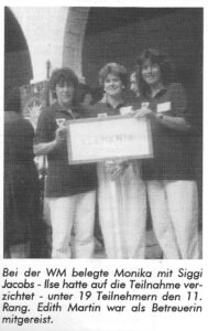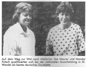 Die Damen Weltmeisterschaft für Doublettes fand vom 30-09.1988 bis 02.10.1988 in Palma de Mallorca statt. Deutschland belegten den 11. Rang mit dem Damen-Team Monika Fritsch und Sieglinde Jacobs. Wegen des Verzichts von Ilse Maurer rückte Sieglinde Jakobs nach.